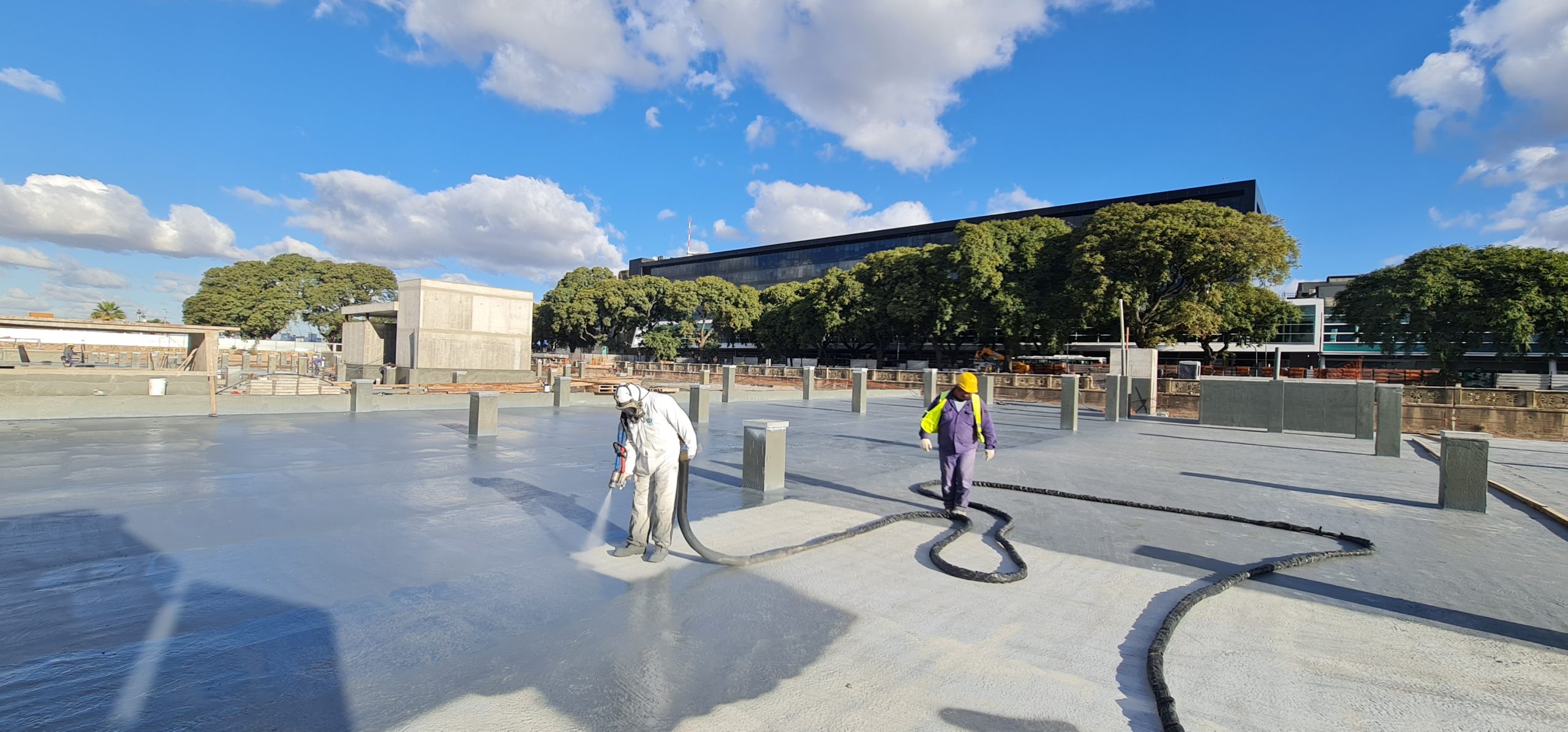 Se aplicó POLIUREA en caliente .